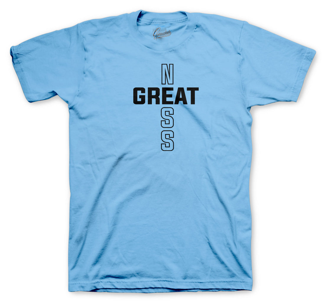 Shirts match Jordan 1 university blue shoes to match 1's sneaker color way. ST Clothing -Greatness Cross Shirt -100% Cotton...