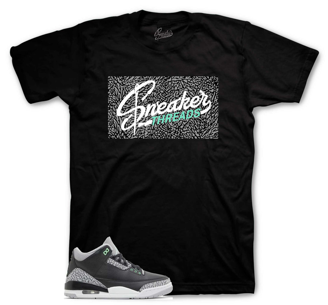 Retro 3 Green Glow Shirt - Sneaker Threads Logo Box - Black