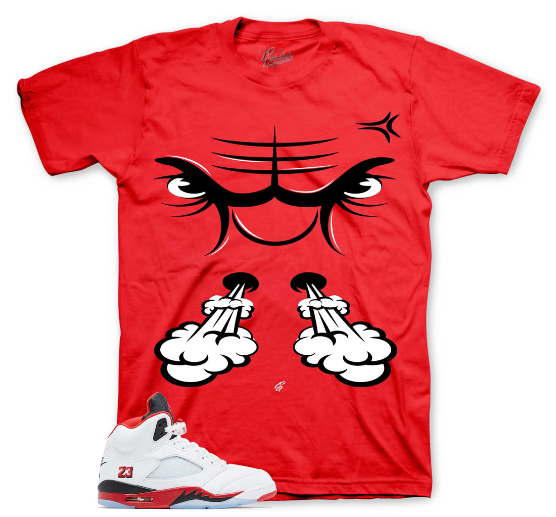 Retro 5 Fire Red Shirt - Raging Face - Red