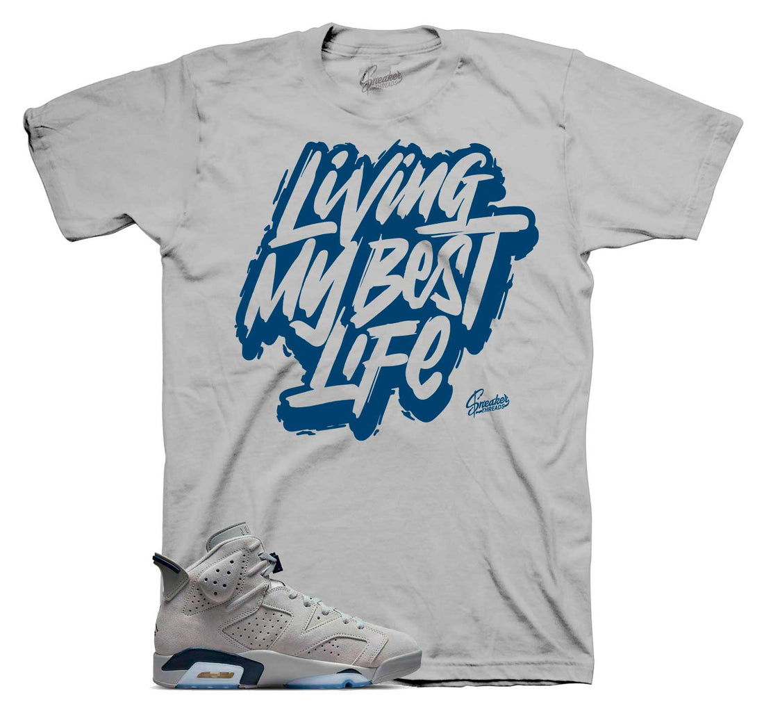 Sneaker shirts match Jordan 6 Georgetown navy shoes ST Clothing - Living Life Shirt -100% Cotton...