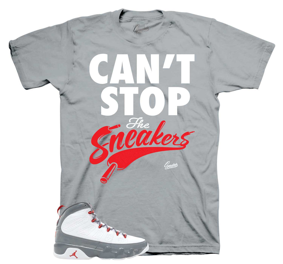 Retro 9 Fire Red Shirt - Can't Stop - Grey