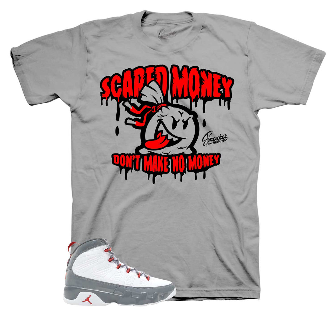 Retro 9 Fire Red Shirt - Scared Money - Grey
