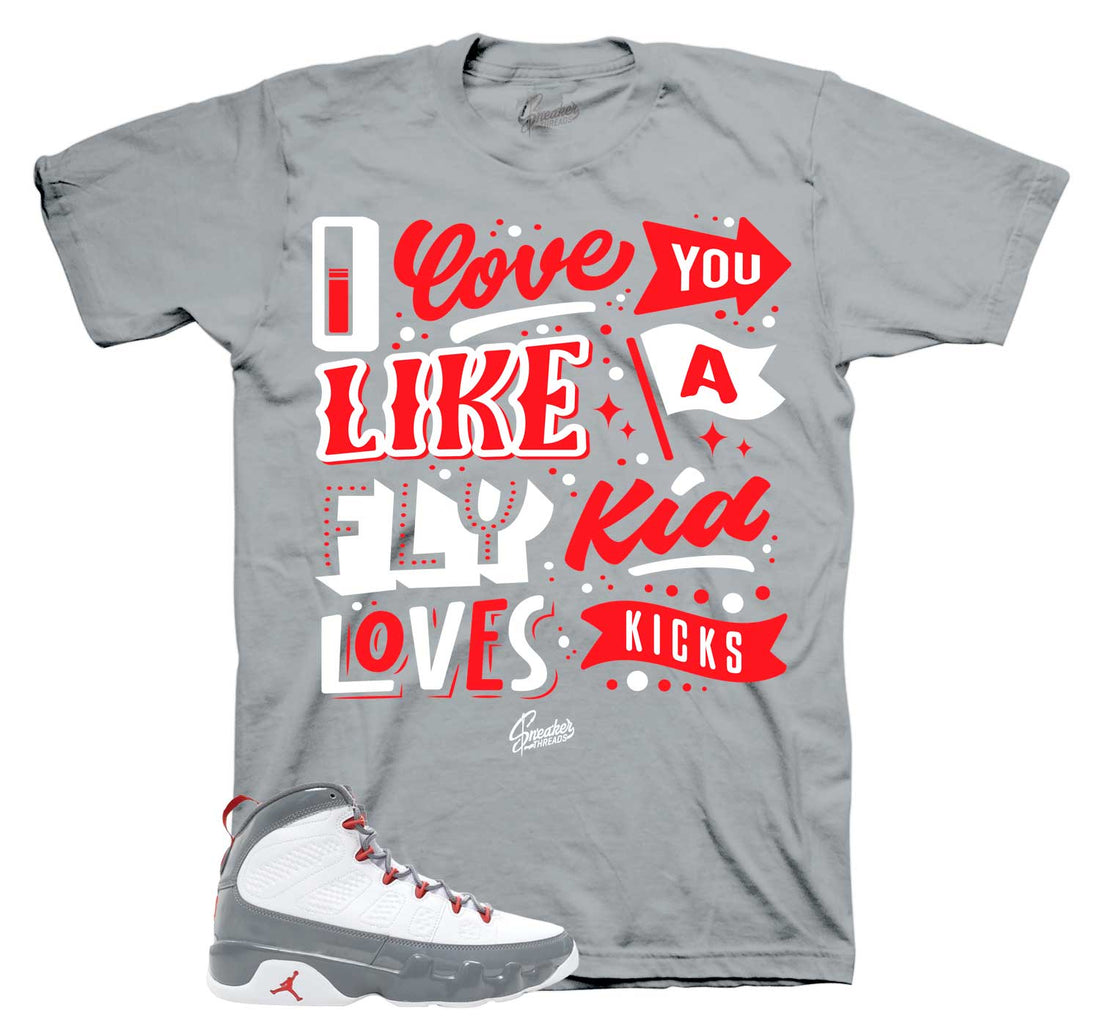 Retro 9 Fire Red Shirt - Love Kicks - Grey