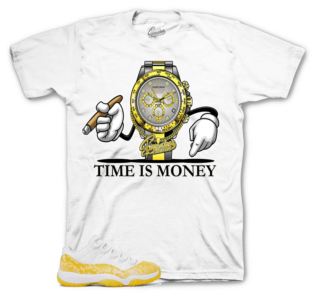 Retro 11 Yellow Snakeskin Shirt - Time Is Money - White