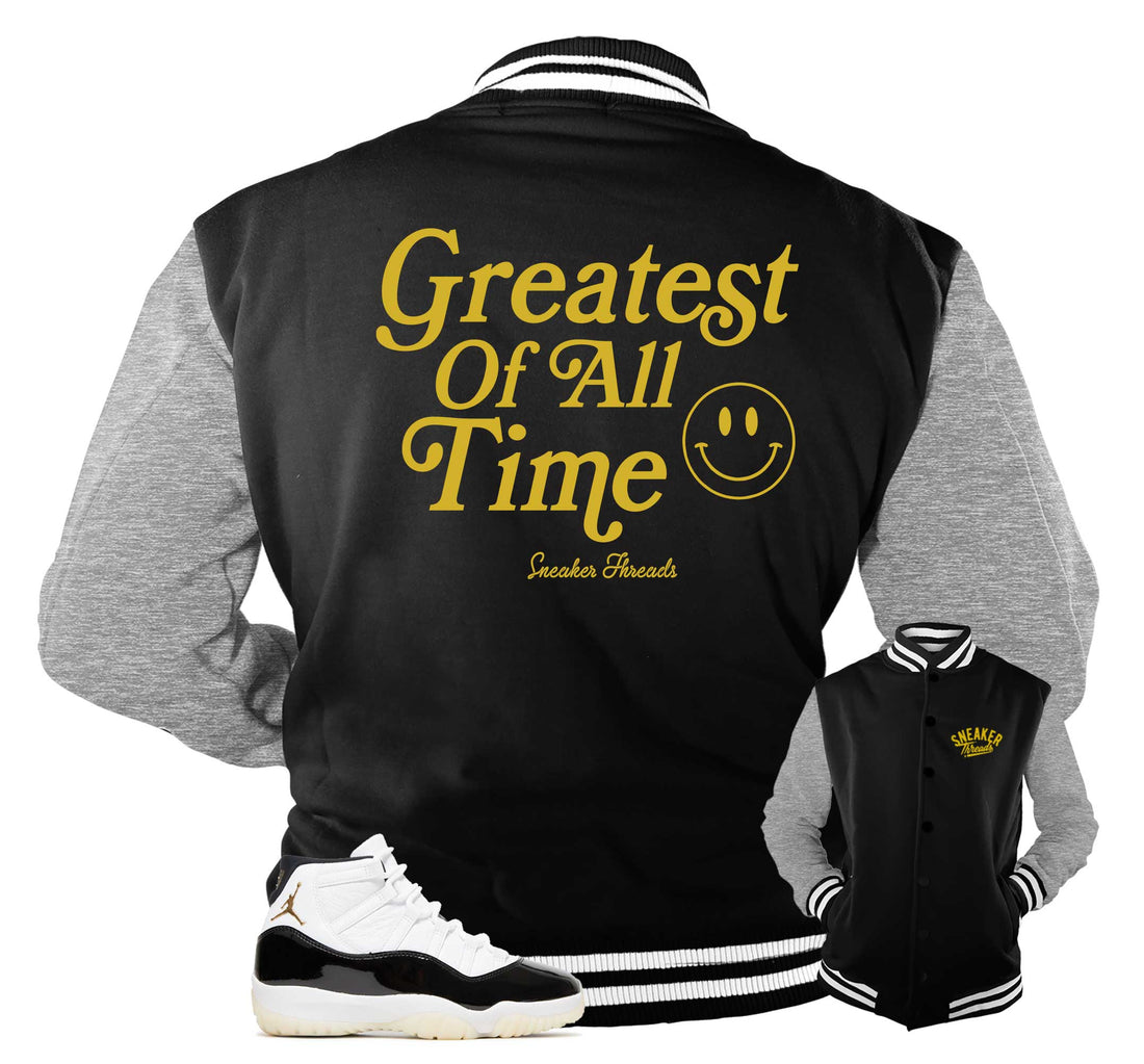 Retro 11 Gratitude Varsity Jacket - Greatest Player - Black