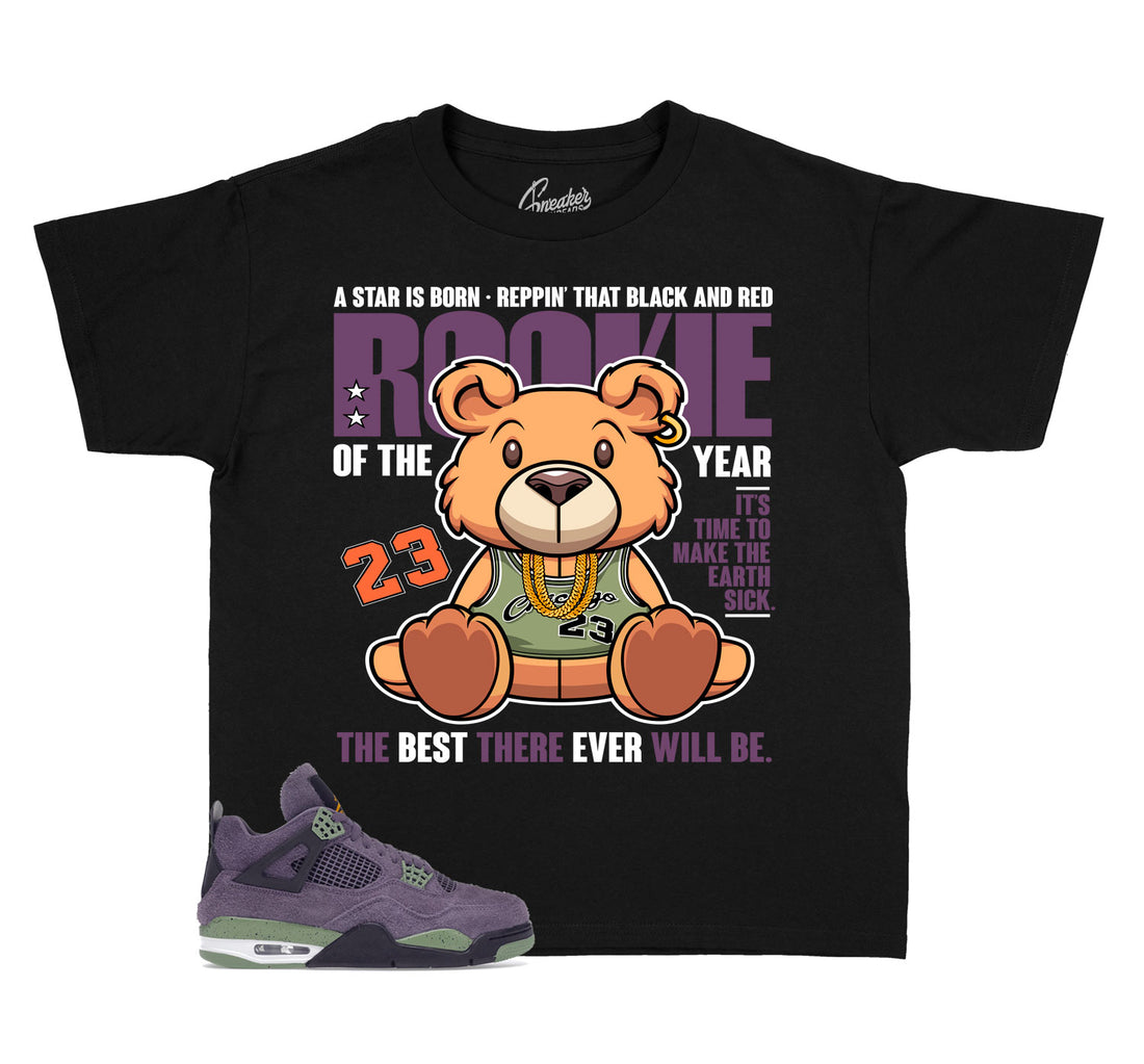 Kids sneaker TeesΒ to match Jordan Retro 4 canyon purple. STΒ Clothing - Rookie Bear Shirt -100%...