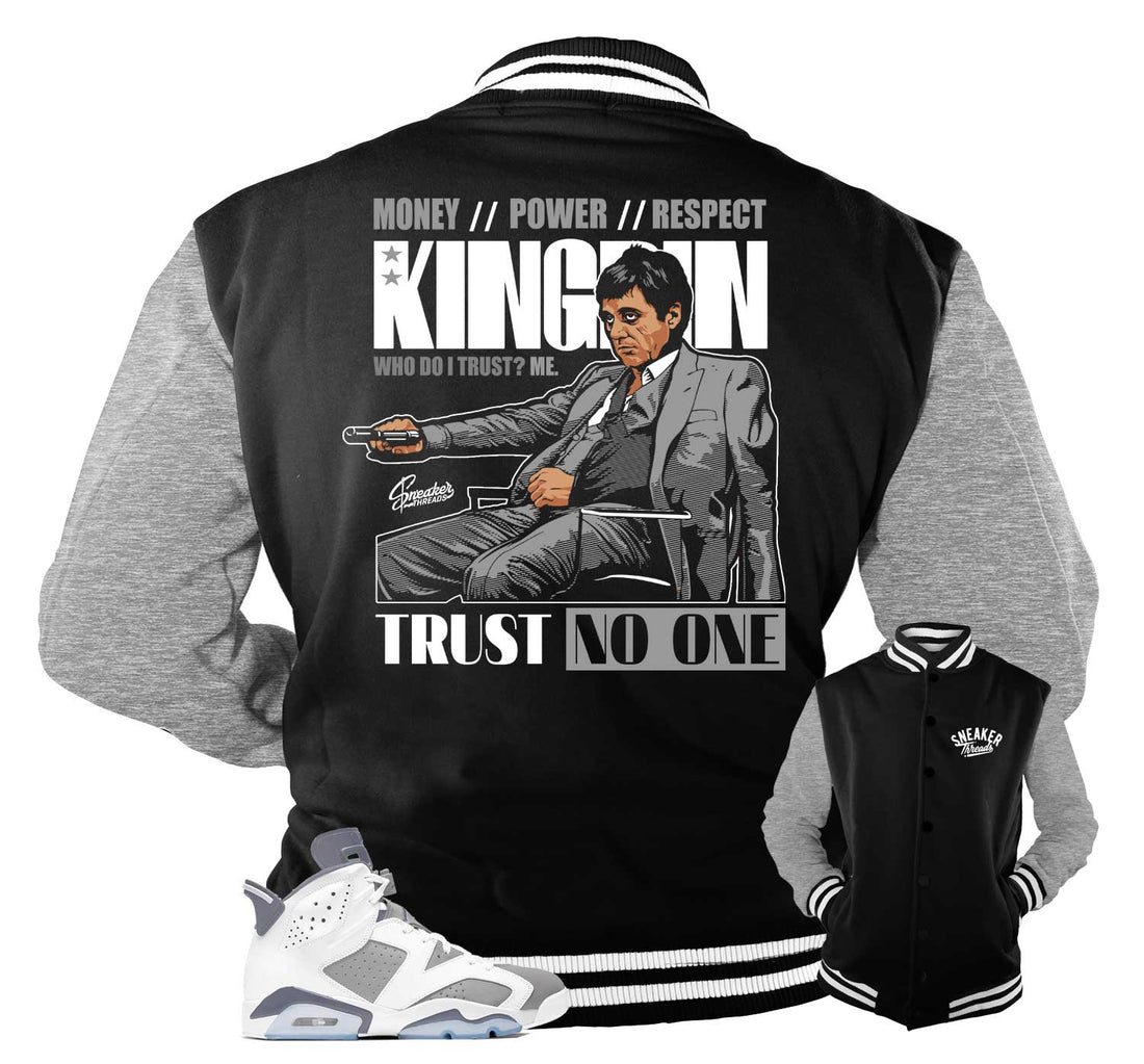 Sneaker jacket match Jordan 6 Cool Grey shoes STΒ Clothing - Trust Issues Varsity Jacket -80%...