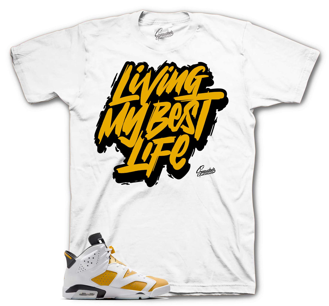 Retro 6 Yellow Ochre Shirt - Living My Best Life - White