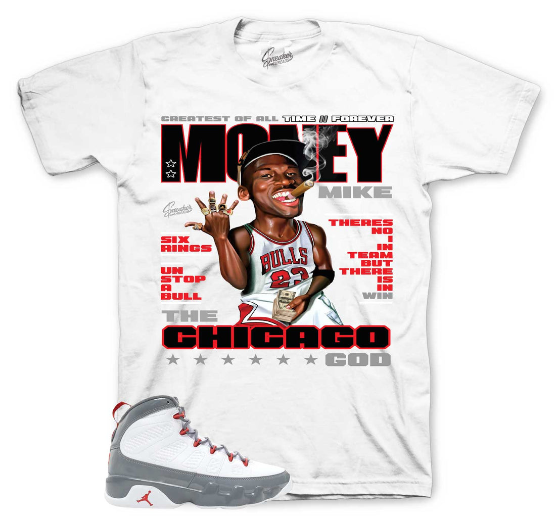 Retro 9 Fire Red Shirt - Money Mike - White