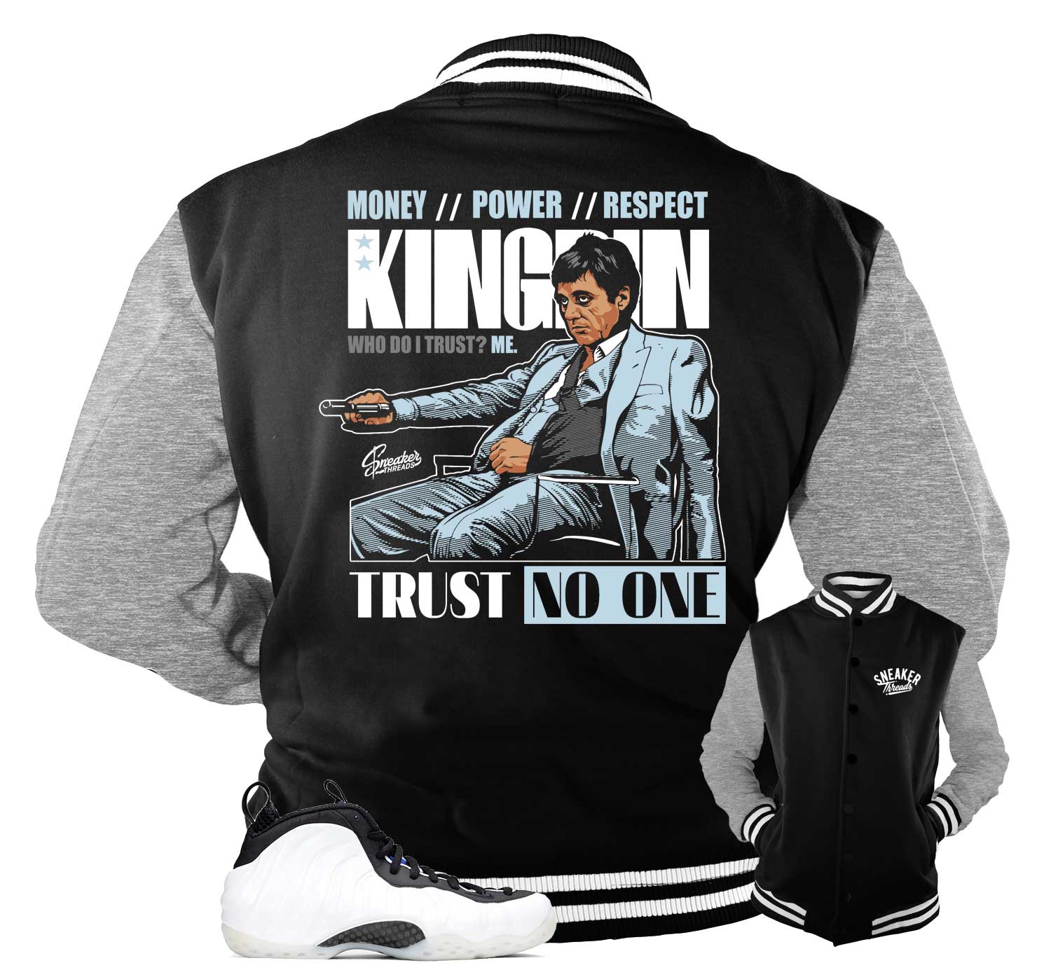 This is the perfect jacket to match you Foamposite One Penny PE white and black shoes.