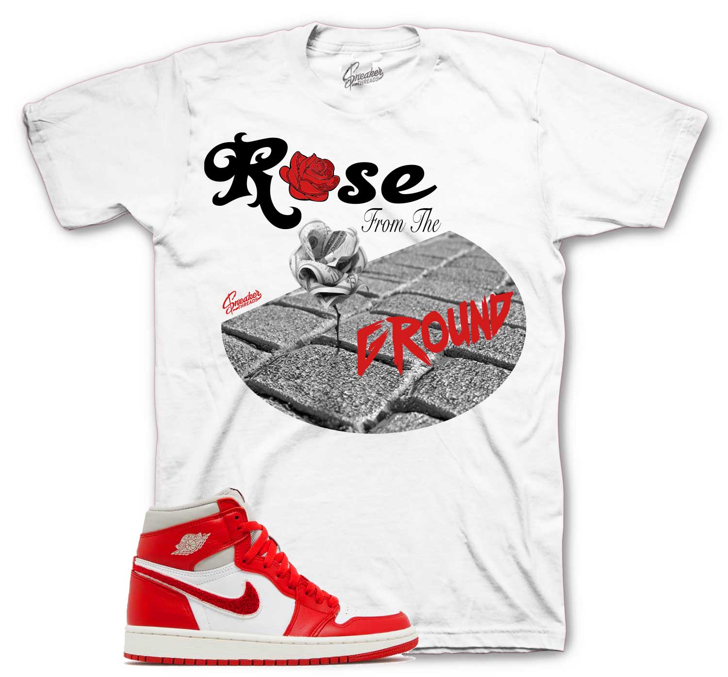 Shirts match Jordan 1 newstalgia chenille shoes to match 1's sneaker color way.