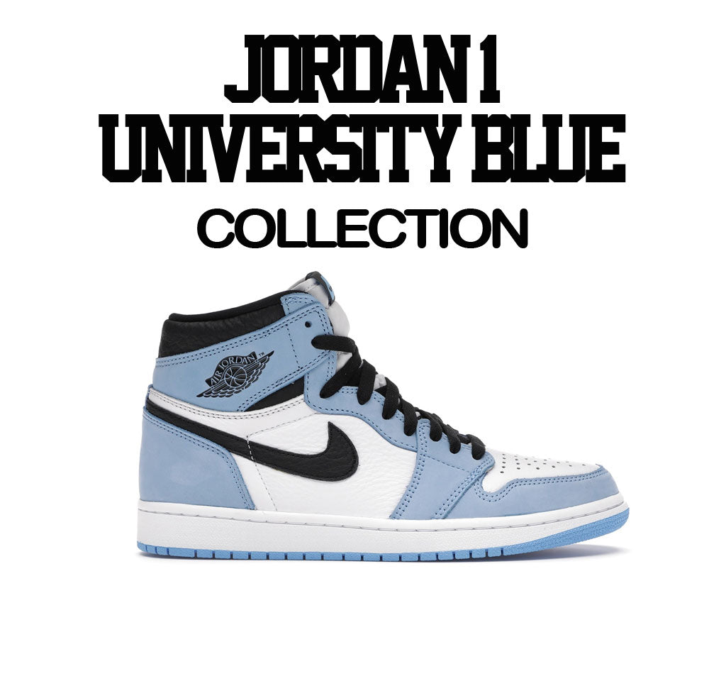 Shirts match Jordan 1 university blue shoes to match 1's sneaker color way.