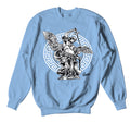 Sweaters match Jordan 1 university blue shoes to match 1's sneaker color way.