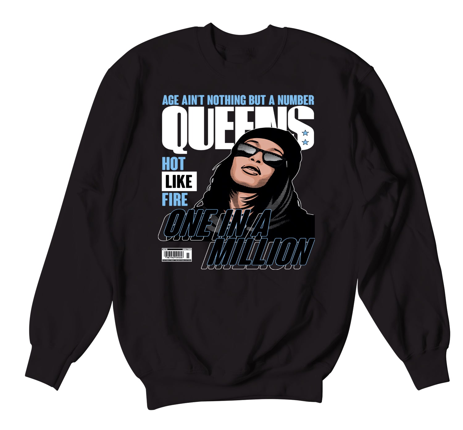 Sweaters match Jordan 1 university blue shoes to match 1's sneaker color way.