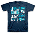 Shirt matches Jordan 13 obsidian sneaker colorway.