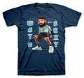 Shirt matches Jordan 13 obsidian sneaker colorway.