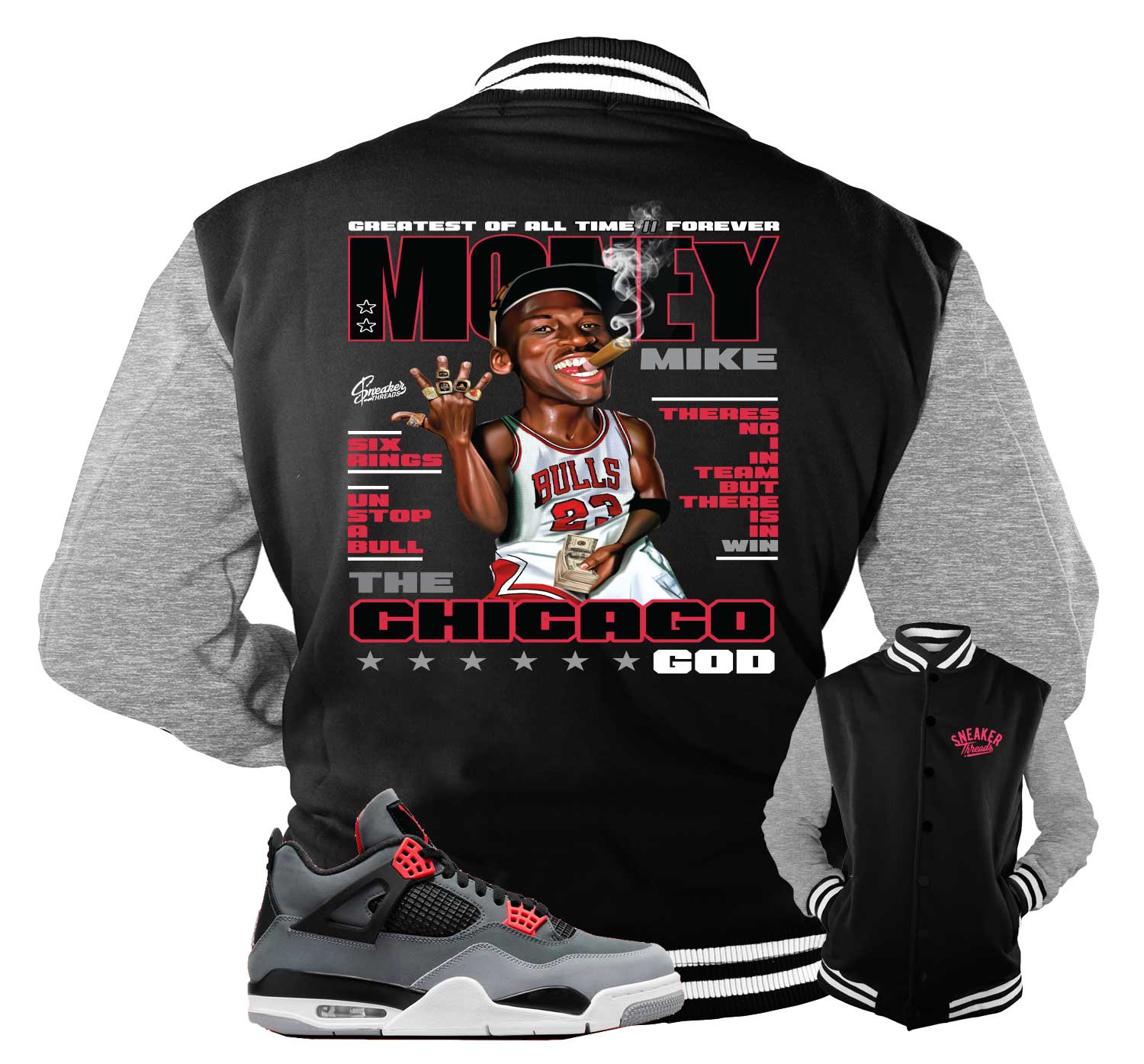 Sneaker jackets match Jordan 4 infrared shoes to match 4's sneaker colorway.