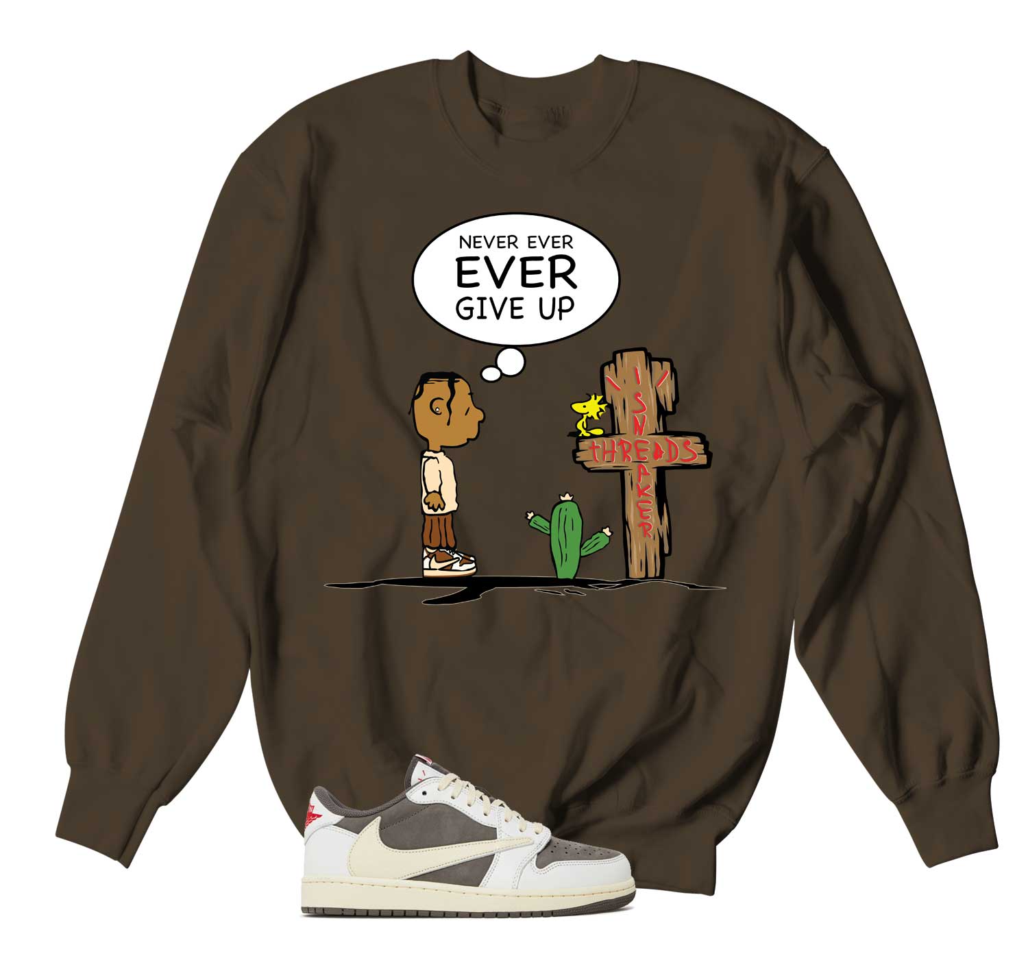 Sweaters match Jordan 1 reverse dark mocha travis scott shoes to match 1's sneaker color way.
