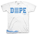 Shirts match Jordan 11 low columbia blue shoes to match 4's sneaker colorway.