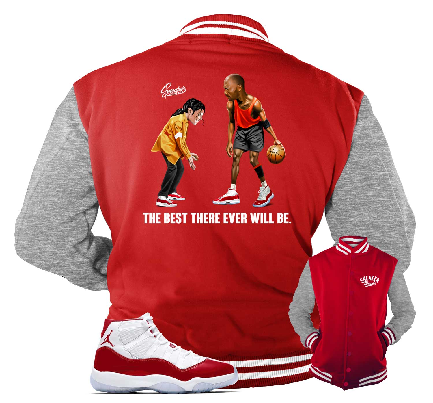 Sneaker varsity jacket to match Jordan 11 Cherry shoes | Tees Match 11's Sneakers.