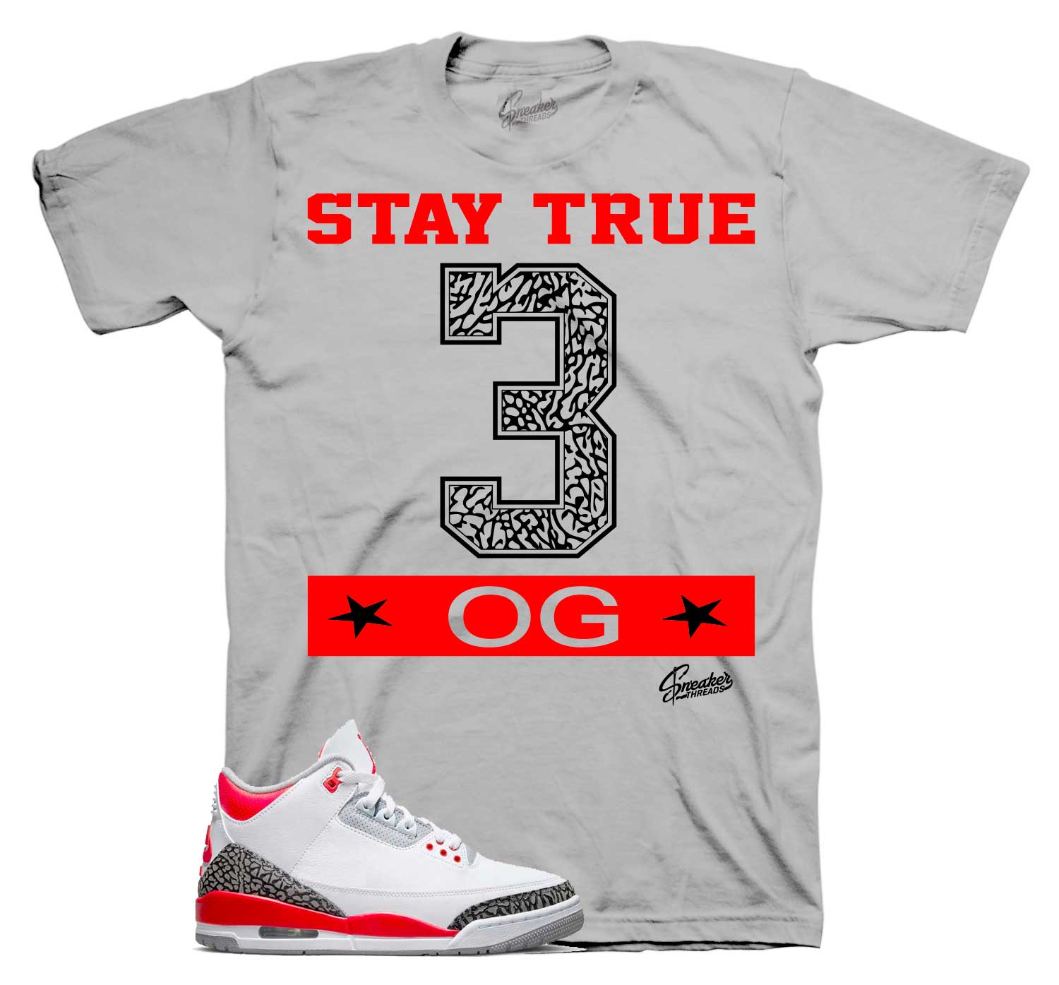Retro 3 Fire Red Shirt - Stay True - Grey