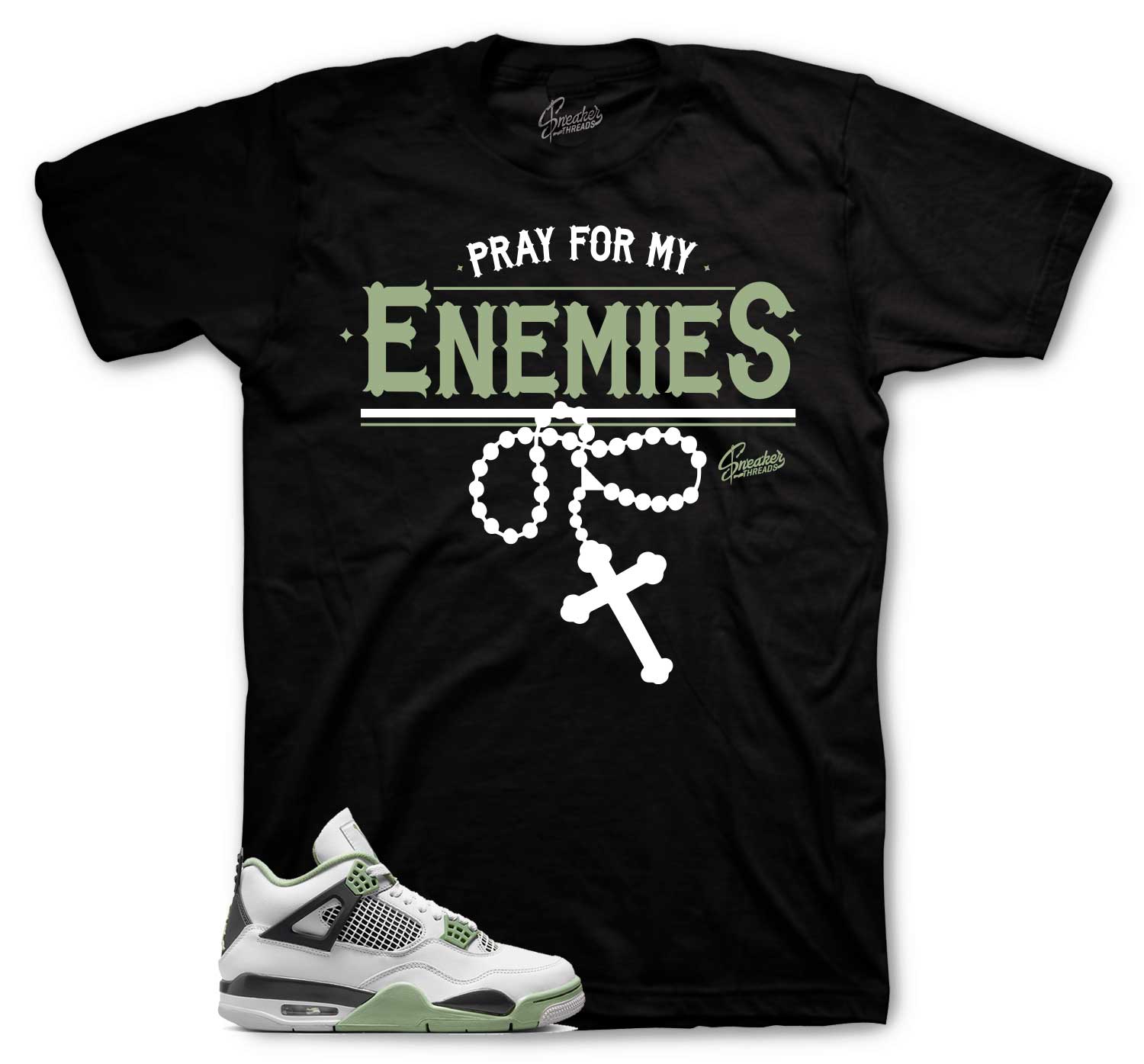 Sneaker Tees to match Jordan Retro 4 Oil Green Seafoam.