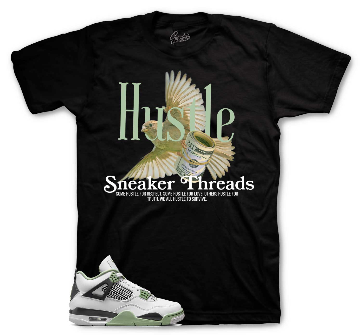 Retro 4 Seafoam Oil Green Shirt - Fly Hutsle - Black