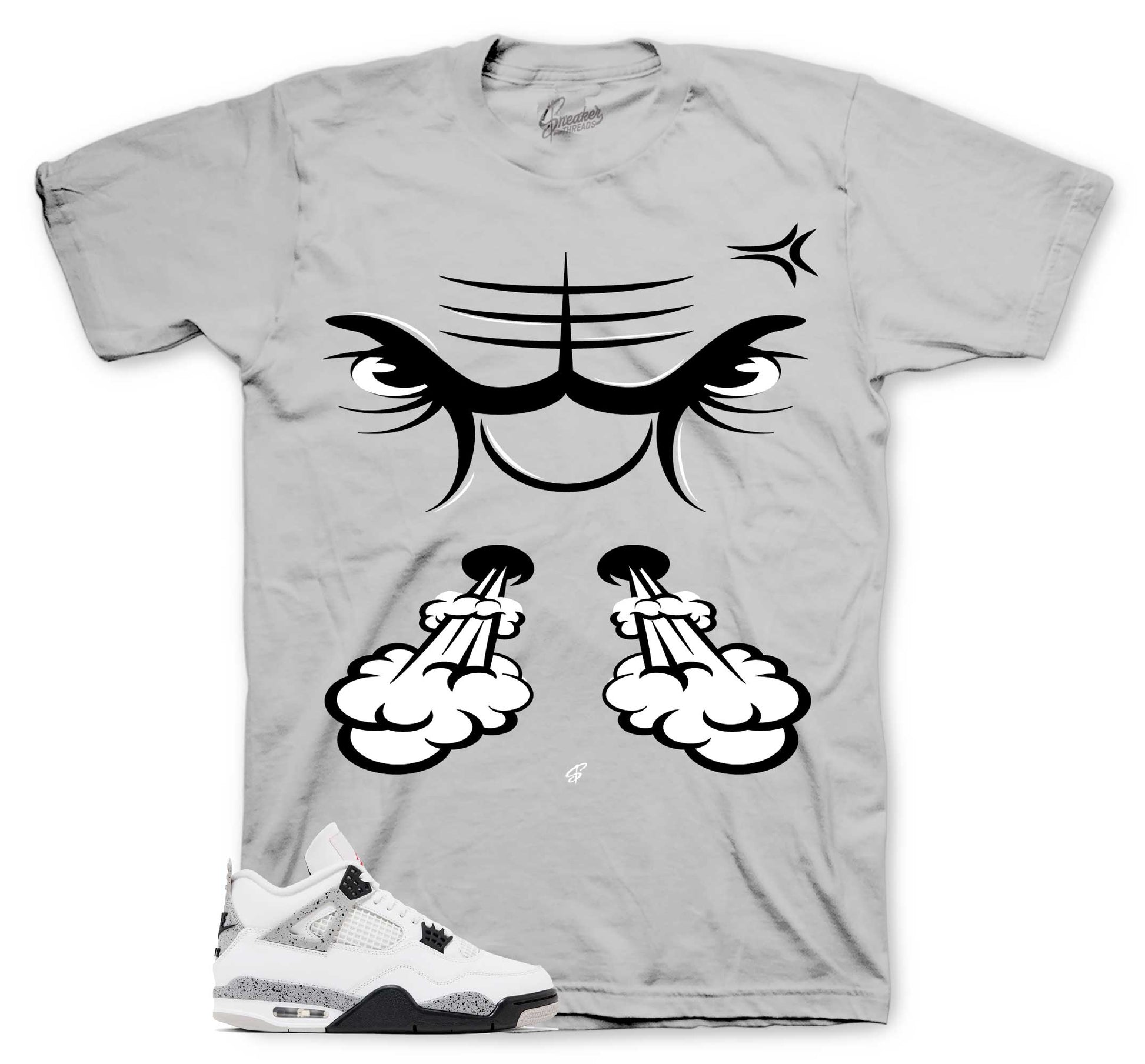 Retro 4 White Cement Shirt - Raging Face - Grey