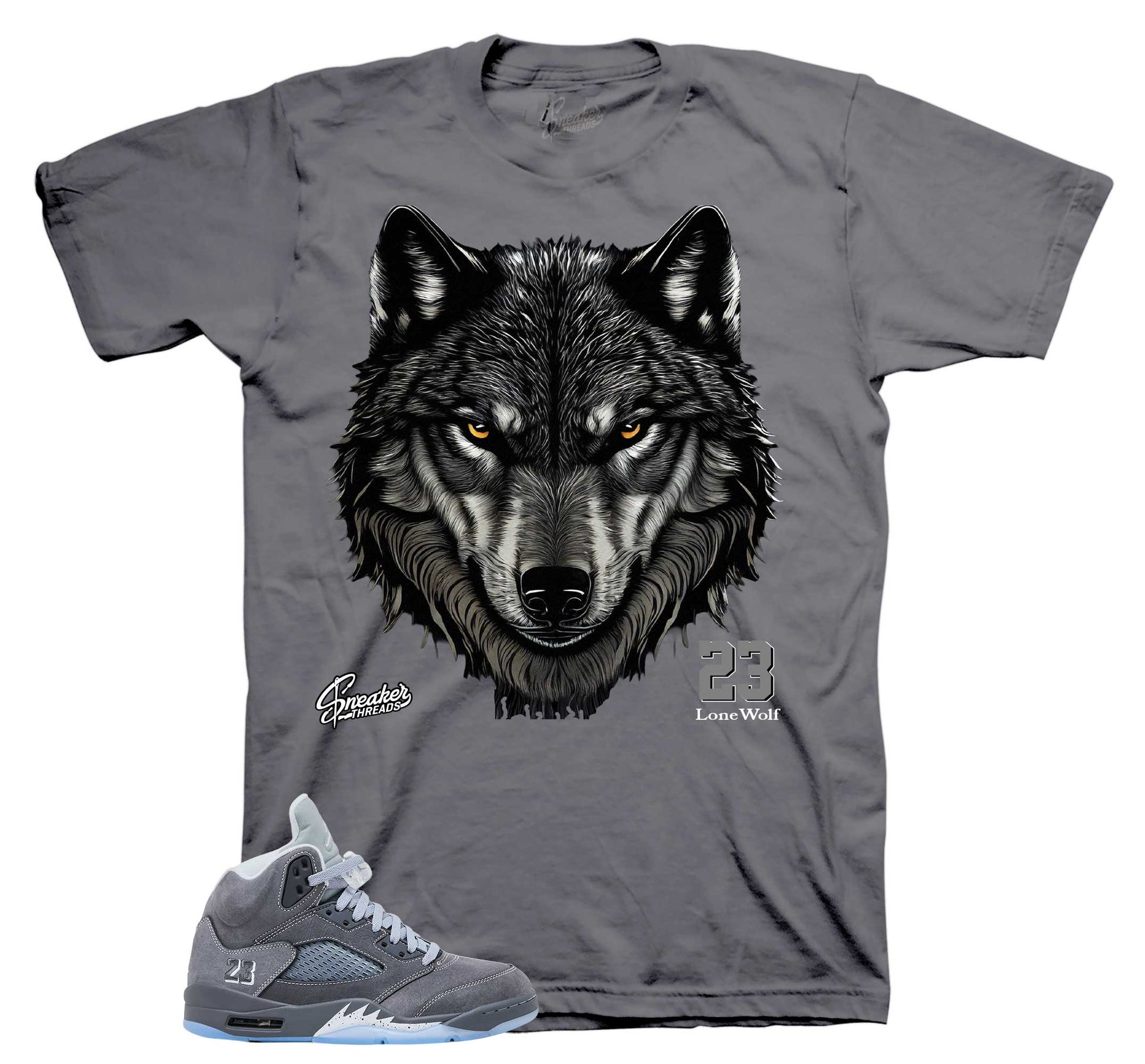 Sneaker tees to match Air Jordan retro 5 wolf grey shoes | wolf grey 5 Sneaker Shirts.