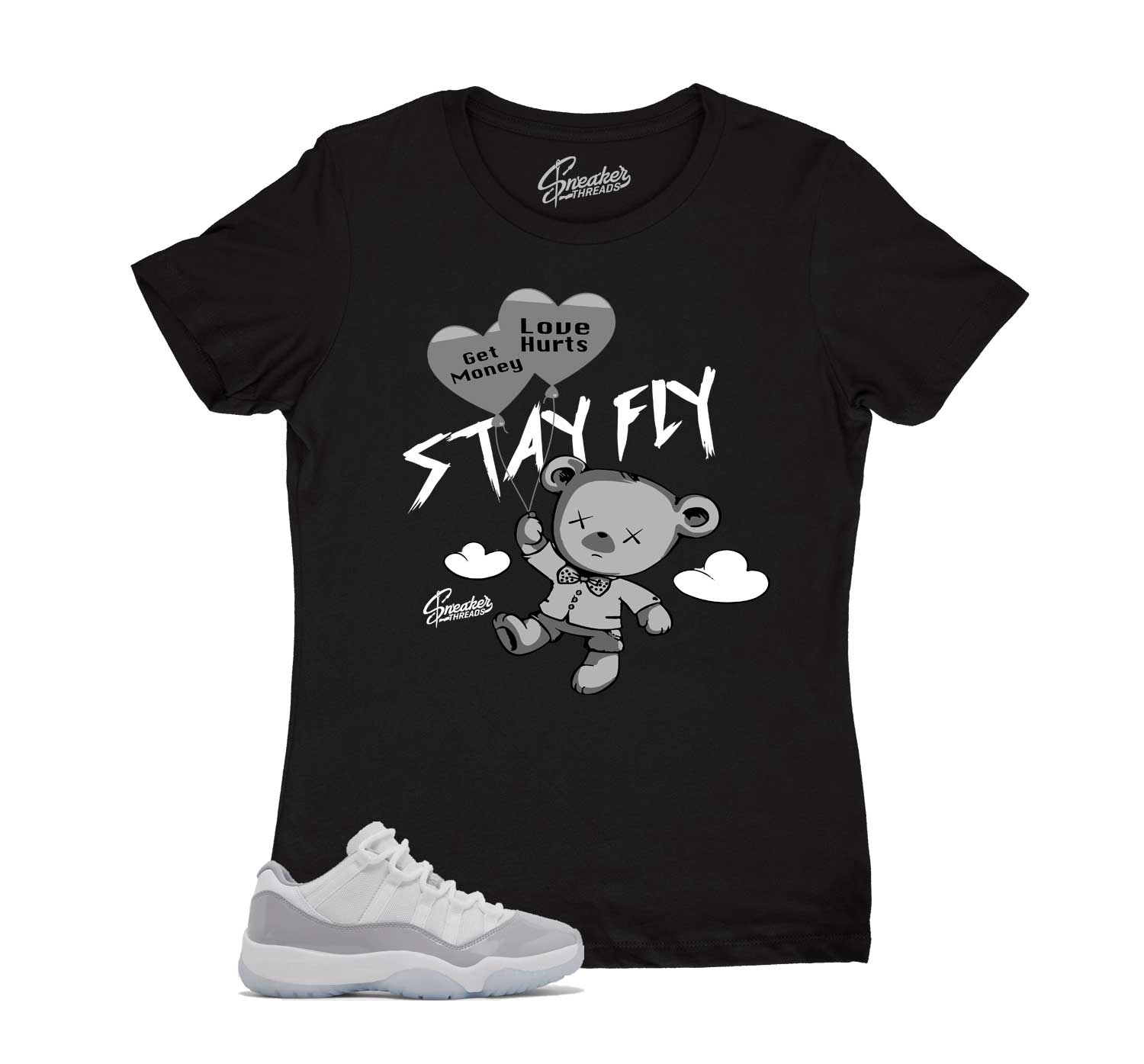Ladies shirts match Jordan 11 low cement grey shoes to match 11's sneaker colorway.