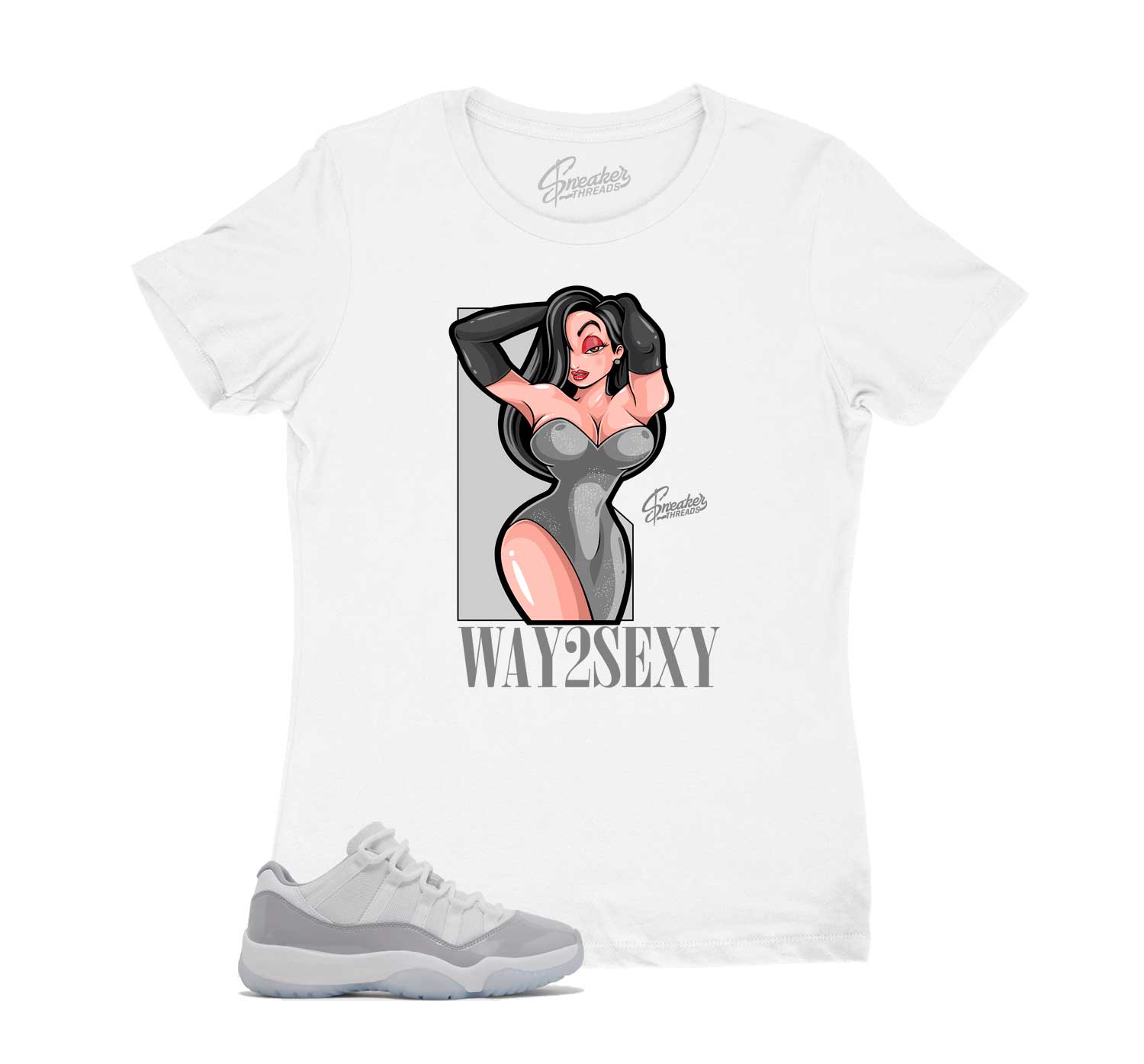 Ladies shirts match Jordan 11 low cement grey shoes to match 11's sneaker colorway.