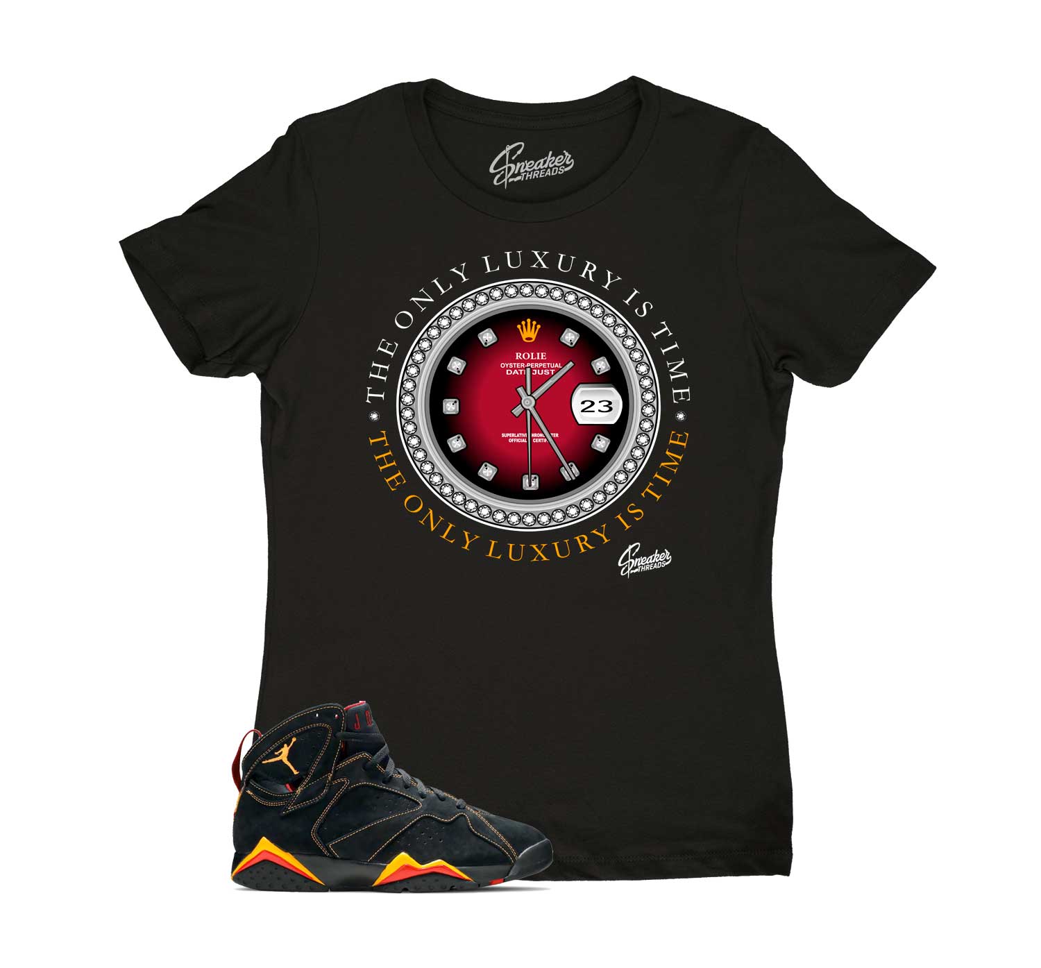 Ladies sneaker shirts match Jordan 7 citrus shoes to match 7's sneaker colorway.