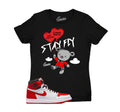 Ladies shirts match Jordan 1 heritage shoes to match 1's sneaker color way.