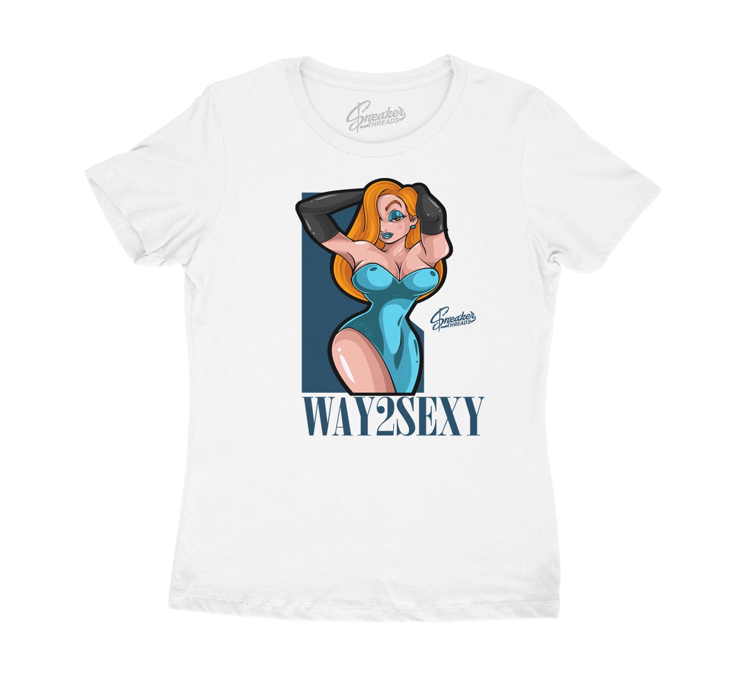 Womens shirt matches Jordan 13 obsidian sneaker colorway.