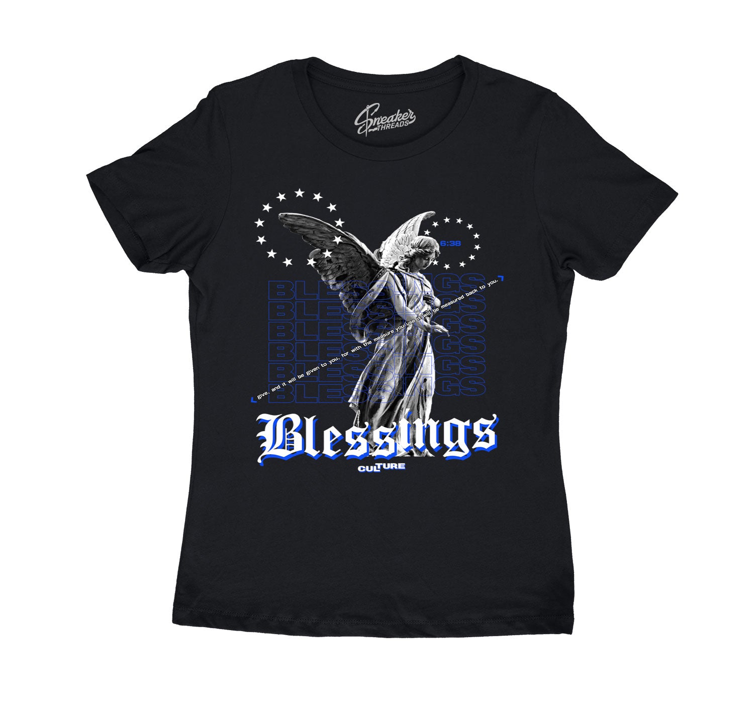 Womens Racer Blue 3 Shirt - Blessings Angel - Black